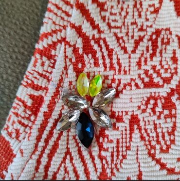 - Bəzək: ön hissədə çiyin yaxınlığında rəngli daş aplikasiyaları