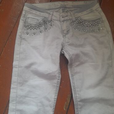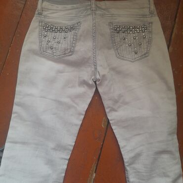 - Dekor: açıq boz modeldə ön və arxa ciblərdə metal daş və pərçim detalları, dekorativ tikişlər