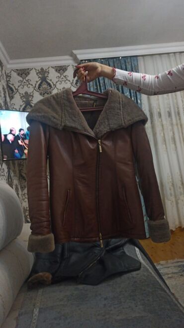 Şəhər içi soyuq havalar üçün ideal, klassik-qəşəng görünüşlü dəri-kürk kombinasiyalı qadın kapüşonlu qış üst geyimi. Marka: Bolero Leather & Fur. Model kodu: B274, ölçü L.