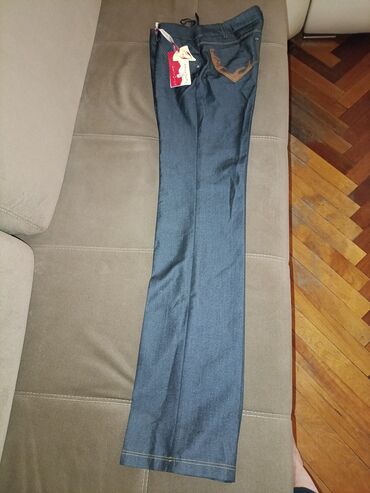 Qararəngdə, düz kəsimli qadın şalvarı. Arxa ciblərdən birində qəhvəyi