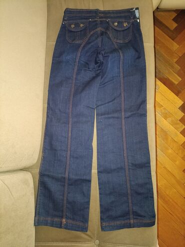 Tünd göy rəngdə, geniş balaqlı cins şalvar. Şalvarın ön hissəsində bağlama hissəsi var və yan tikişlər boyunca tikmə detalları mövcuddur. Arxa tərəfdə iki ədəd qapaqlı cib yerləşir. Bu şalvar gündəlik istifadə üçün rahat və şık bir seçimdir.TƏZƏDİR 26 razmer