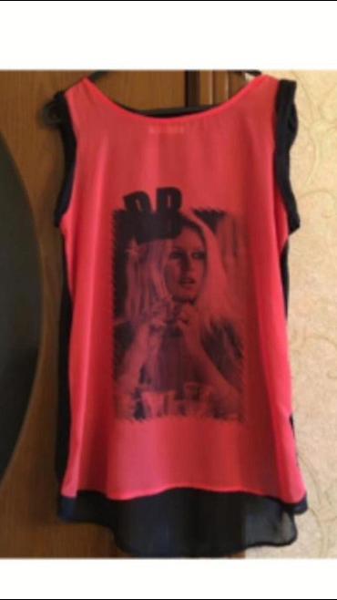 3) Qolsuz köynək: Çəhrayı-qara rəng birləşməsi, ön hissədə böyük qrafik/illüstrativ print. Yanlarda qara panellər, alt hissə yumru kəsim.
