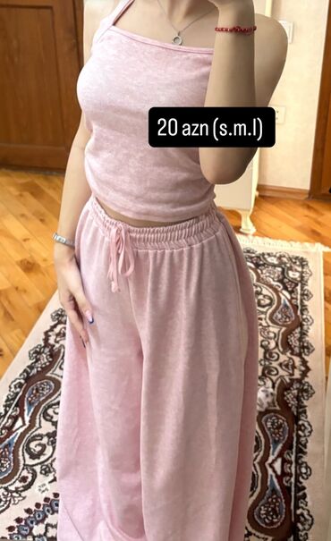 Qadın geyimləri dəsti – müxtəlif brendlər və modellər - Vivienne firmasından qısa mavi bleizer. Ölçü: XS–S. Qiymət: 14 AZN. - Mexx firmasından çəhrayı şalvar. Ölçü: 36. “Baha alınıb, gözəl materia...