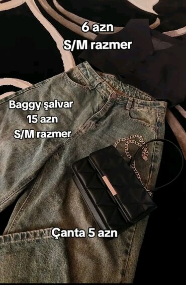 - Baggy şalvar: açıq yaşıl-cins effekti, S/M razmer. Şəkildə qiymət: 15 AZN.