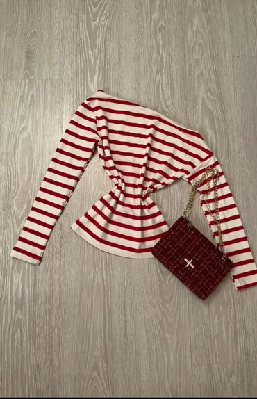 - Zolaqlı bluz: ağ-qırmızı, uzunqol, bel hissəsi büzgülü, dairəvi ətəklik. Gündəlik və dəniz tərzi kombinlər üçün ideal.