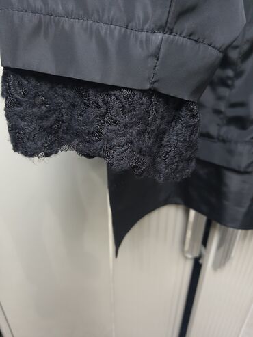 Yarı balonka, yarı parça vetrovka. Defekti yoxdur. 36-38 razmer. 40 razmerə də gedir hətta. Qara qadın üst geyimi – kombinə materiallı kapüşonlu model. - Ön hissə: parlaq laklı/quilted (şişmə ef...
