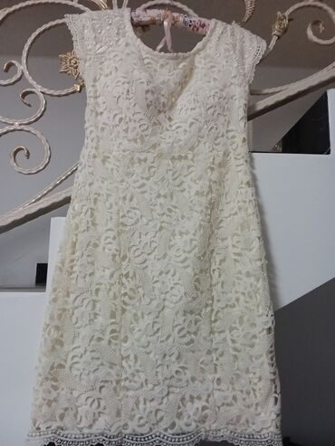Ağ rəngdə zərif kokteyl/gecə geyimi. - Düz kəsimli, dizə qədər