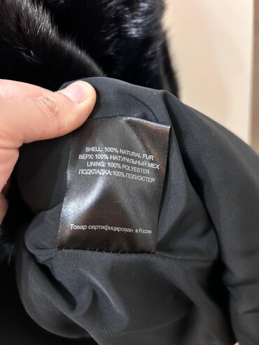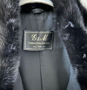 Zərif görünüş, gündəlikdən ziyafətə qədər müxtəlif kombinlərə uyğunlaşdırıla bilən qara təbii kürk palto. Brend etiketləri və tərkib məlumatı şəkillərdə əks olunub.
