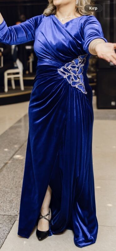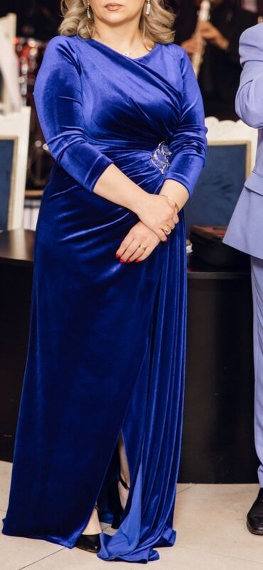 Mavi məxmər ziyafət geyimi 1 defe geynilib teze kimidir