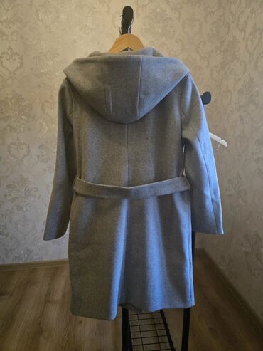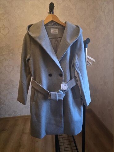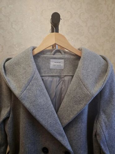 Qadın üçün şıq palto Moskvadan alinib. S razmer - Rəng: boz, xırda naxışlı (balıqqulağı/herringbone effektli) - Model: qabarıq yaxalı, ikiqat düyməli (double-breasted) klassik kəsim - Uzunluq: diz...