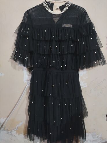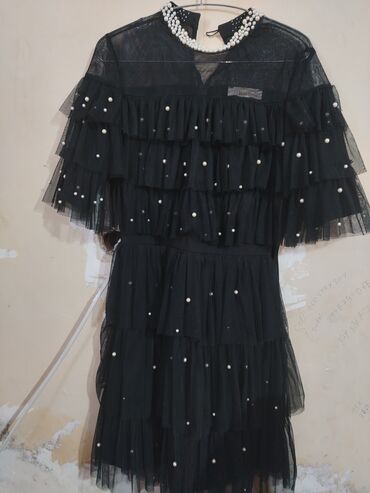 Zərif inci detalları və çoxqatlı tül quruluşu ilə diqqət çəkən, eleqant gecə donu.