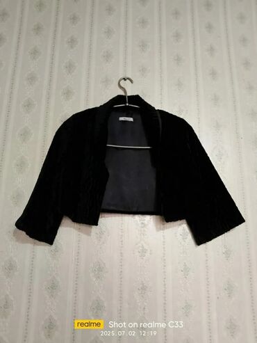 - 2-ci məhsul: qara xəz bolero – qısa model, 3/4 qollar, yumru yaxalıq, daxili astarlı. Donlar və axşam kombinləri üzərinə geyinmək üçün ideal.