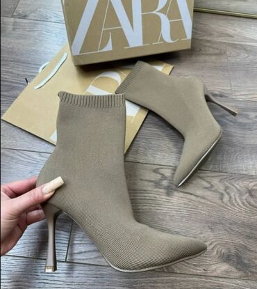 Zara qadın “sock booties” – incə, elastik trikotaj materialdan qısa çəkmə tipli hündürdaban ayaqqabı.