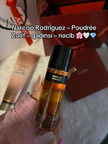 - Narciso Rodriguez – Poudrée (Narciso Poudre) – zərif, qadınsı və nəcib çalarlar. Pudramsı-çiçəkli tonlar yumşaq isti baza ilə birləşir, minimalistik silindrik flakonda təqdim olunur; zərif obrazları tamamlayan klassik aroma.