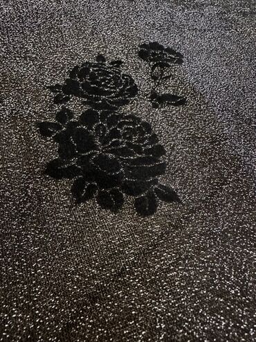 - Material: Parıltılı metalik saplarla toxunmuş yumşaq parça, üzərində məxməri effektli qara gül naxışları