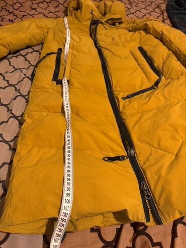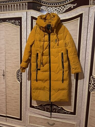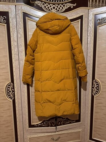 Qadın uzun şişmə qış gödəkçəsi – xardal/sarı rəng