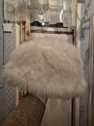 Ağ rəngli qış papağı – qulaqlı, tüklü kənarlı - Model: qulaqlı “uşanka” üslubunda - Materiallar: üst hissə ağ dəri, kənarlar yumşaq tüklə işlənmiş - İçlik: qara rəngli, tikməli, isti qalın qat - D...