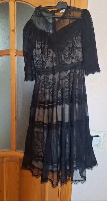 Qara rəngli zərif tül don - Material: şəffaf tül və qipir fakturalı