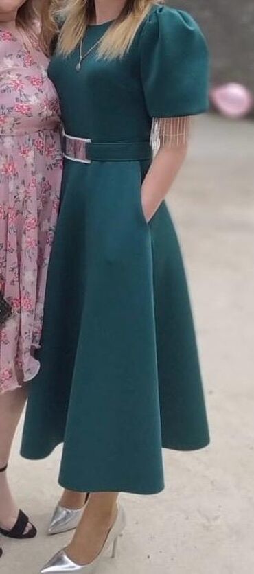 Zərif ziyafət libası – açıq adaçayı-yaşıl tonunda, uzun və axıcı ətəkli model. Ölçü 38 üçün uyğundur. Cəmi 1 dəfə geyinilib. Real alıcıya endirim olunar. - Parıltılı, hamar fakturalı parça (atlas/s...