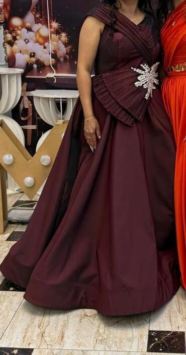 1) Qırmızı-bordo uzun ziyafət geyimi