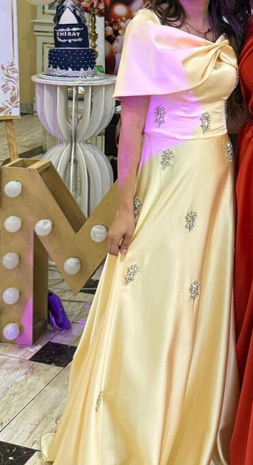 Məhsul: Zərif ziyafət/libas Ölçü 38/40 Rəng: Boz-mavi (şampan parıltılı atlas parça) Uzun, balıq kəsimli ve öndən razrezli don. Toy, nişan, məzuniyyət, xüsusi dəvətlər və rəsmi tədbirlər üçün şıq s...