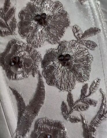 Nəfəs alan atlas parça və incə əl işi naxışlar sayəsində libas həm minimal, həm də lüks estetikanı birləşdirir. Sol tərəfdəki floristik aplikasiyalar libasa fərqli vurğu qatır, hərəkətdə yüngül parıltı yaradır.