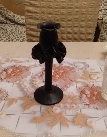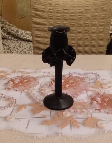 Səliqəli İşlənmiş Qədimi Köhnənin Dekorativ Bəzəkli Gül Formalı Qara Rəngli Şamaltı – Şamdan Satılır. Qiymət 6 AZN dir....