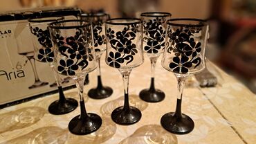 Qədəhlər, rəng - Qara, Şüşə, 6 ədədli dəst