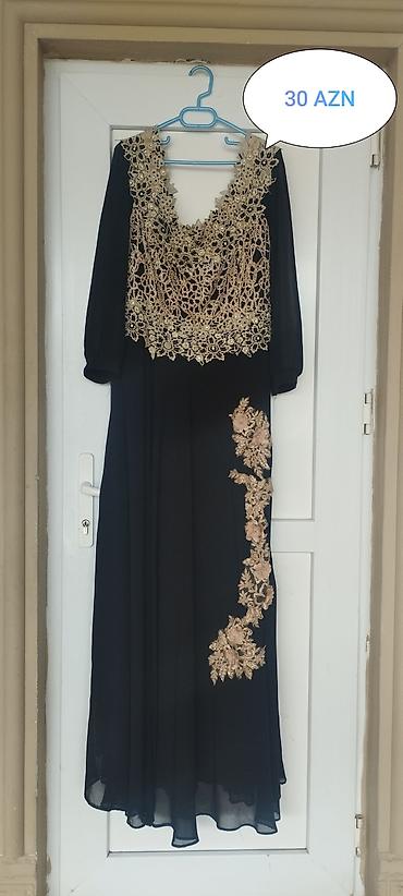 - Qara şifon ziyafət donu - Üst hissə: qızılı rəngdə sıx krujeva