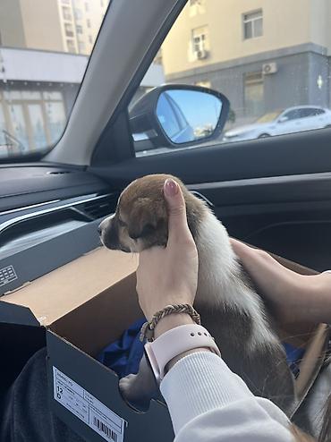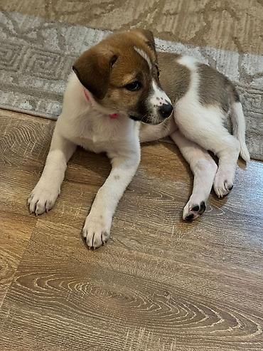 Balaca it balası - Cins: qarışıq (ağ-qəhvəyi ləkəli tüklü) - Təxminən yaş: balalıq dövrü - Xarakter: sakit və oyunbaz, həyətə tez uyğunlaşır - Görünüş: qısa-orta uzunluqda tüklər, qıvrım quyruq, a...