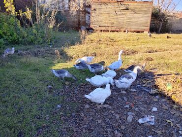 Qarışıq təsərrüfat quşları satılır - Qaz sürüsü: ağ və boz-qara zolaqlı (Seben/Boz tipinə bənzər) iri bədənli quşlar. Sürüdə dişi və erkək fərdlər var. - Ördəklər: ağ rəngdə, açıq sahədə sərbəst g...