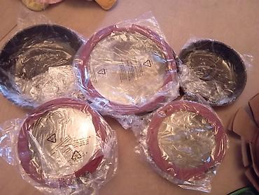 - Dəstdə müxtəlif ölçülər: bir neçə tava və qazan, 3 şüşə qapaq, 2 ədəd çıxarılan sap