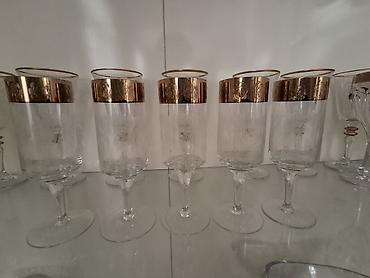 5 ədəd qədimi işləməli bakal dəsti,şəffaf və qızılı hissəsi işləməlidir.Uzun ayaqlı,orta boyludur.. Qızılı hissəsi gedənlərdən deyil.Qiymət 400 AZN
