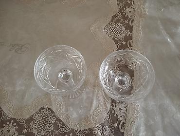 Xrustal bakallar Az istifadə edilib. Cəmi: 5 ədəd Göz oxşayan zərif dizaynlı,hündür tərtəmiz xrustal qədəhlərdir (Bakallardır).Heç birində qırıq,zədə,çat yoxdur Hündürlük: 23 sm Diametir: 8 sm ...