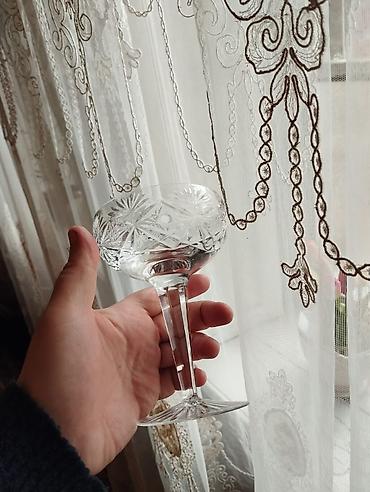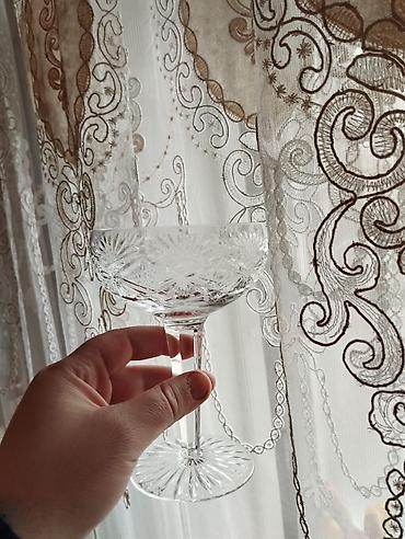 Məhsul: Əl işı kristal qədəh 6 deneli Təsvir: - Material: 24% PBO tərkibli qurğuşun kristalı (stiker: “hand made crystal, 24% PBO, Made in Russia”) - Mənşə: Rusiya istehsalı, əl işi