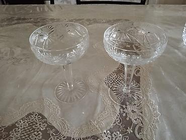 Xrustal fujer, böyük fujerin hündürlüyü 22 sm, 12 ədəddir, birinin qiyməti 13 manat, kiçik fujerin hund.17 sm, 12 ədəddir, birinin qiyməti 11 manatdir