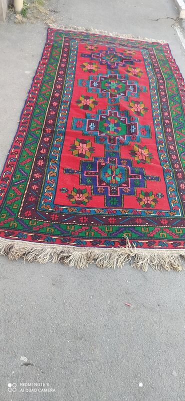 Qədim əl toxuması yun xalça (1.50x2.63) Qədim əl toxuması yun xalça satılır. Tam təbii yun iplikdən toxunub, qalın və ağır xalçadır. Rəngləri canlıdır, bitki boyası ilə boyanıb, üstündə heç bir çü...