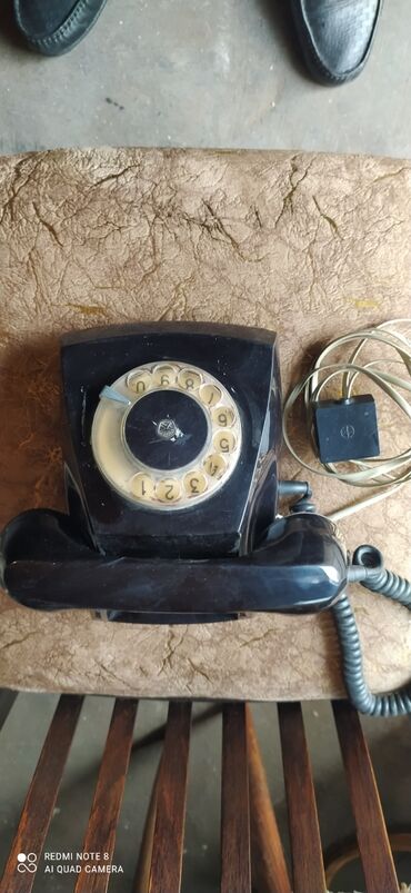 Stasionar telefonlar SSSR. İşlək vəziyyətdədirlər. Dekor əşyası kimidə istifadə oluna bilər. 1) Bej rəngli. Diskli. Qiyməti 200 manat. 2) Mavi düyməli. Qiyməti 100 manat. 3) Ağ diskli. Qiyməti 25...