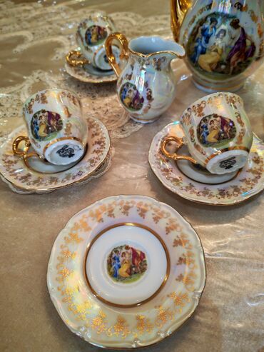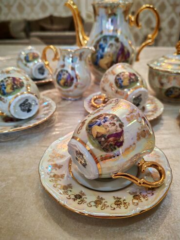 Qızılı naxışlı, klassik motivli porselen qəhvə dəsti