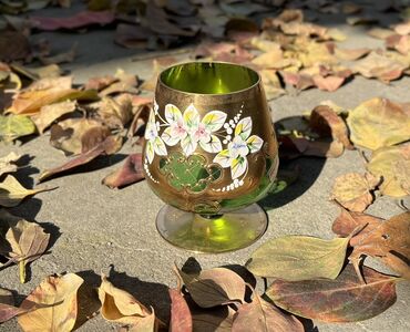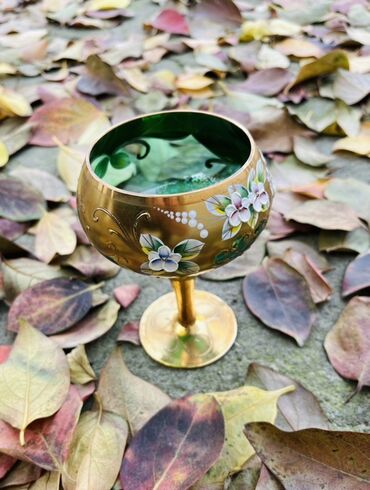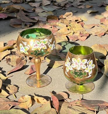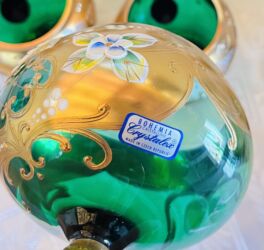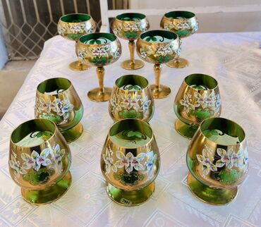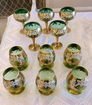 Qızılı-yaşıl bəzəkli şüşə bokal dəsti
