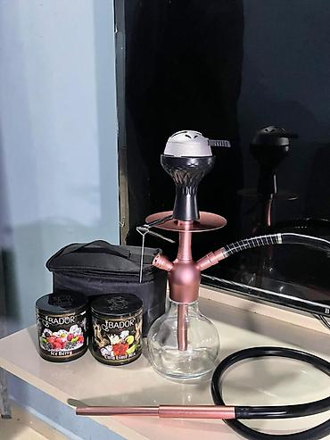 Tam dəst nərgilə seti ikinci əl di 2 ay isfade olunub - Şüşə kolba: tüstünü soyudan, qalın və dayanıqlı tüstü rəngli şüşə - Metal şaxta və lövhə: paslanmayan material, sabit hava keçidi - Silikon ...