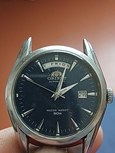 Şəffaf və oxunaqlı siferblat, gündəlik istifadə üçün praktik funksiyalar (gün və tarix), möhkəm polad korpus və 50 m su keçirməzliklə Orient-in etibarlı avtomatik saatı.