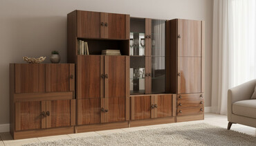 - Modul quruluş: bir neçə şkaf və bölmədən ibarət böyük divar kompozisiyası