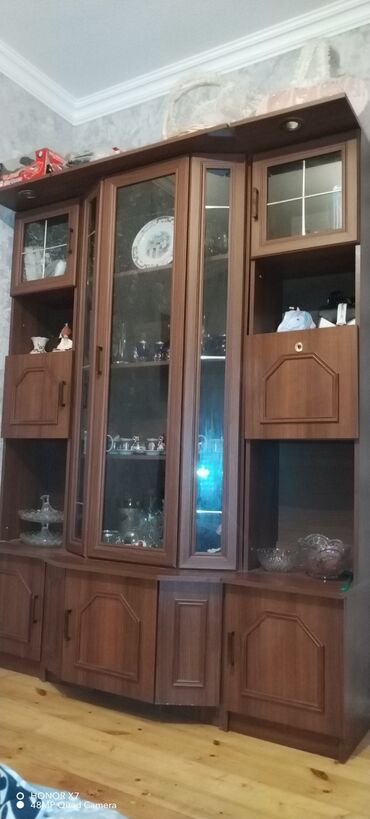 Qonaq otağı üçün böyük divar vitrin-garnitur