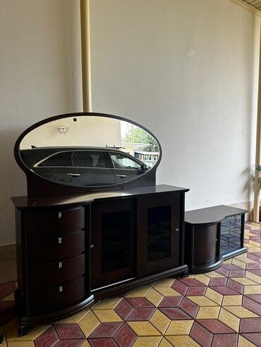 Klassik tərzdə qonaq otağı mebel dəsti Tərkibi: - Geniş komod və böyük divar güzgüsü: üst hissədə dekor üçün geniş səth, mərkəzdə 4 ədəd çəkmece, hər iki yanda qapalı dolab. Metalkenarlı tutacaqla...