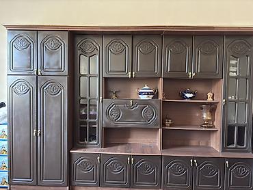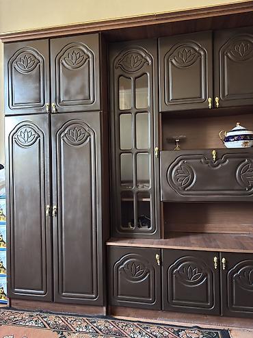 Klassik üslubda vitrin-bufet dəsti.100 manat - Material: ağac karkas, oyma dekorativ elementlər - Rəng: isti qoz tonları - Üst hissə: şüşəli vitrin bölməsi, 4 ədəd şüşə qapı; daxilində güzgülü arx...