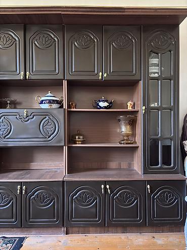 Mebel dəsti – salon üçün böyük divar dolabı - Material: ağac teksturalı laminat / tünd qəhvəyi rəng. - Modul quruluş: bir-birinə birləşdirilən bir neçə blokdan ibarətdir, istəyə görə hissələr ayrı...
