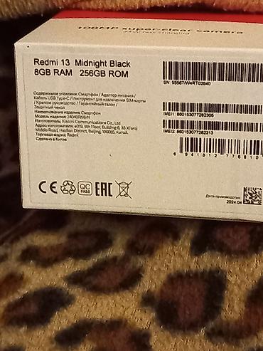 Xiaomi Redmi 13 – qutu məzmunu ilə Texniki xüsusiyyətlər: - 108 MP