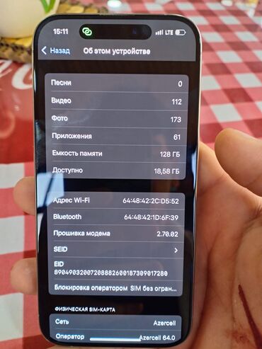 15pro 128gb 89pil idealdır heçbir cızığı falan yoxdu tezedır endirim olunacağ