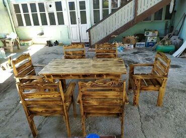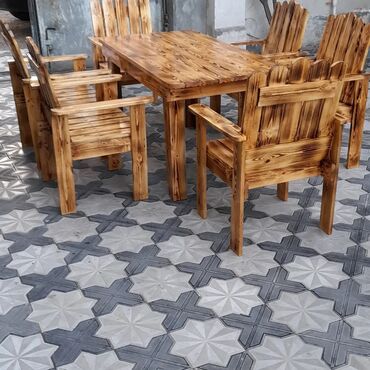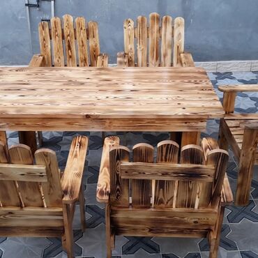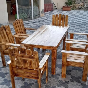 Metall karkaslı bağ/teras masa–stul dəstləri - Dizayn: Minimalist və müasir xəttlər, qara toz boya ilə örtülmüş möhkəm metal karkas; üstlər və oturacaqlar taxtadandır. - Komplekt variantları: - ...